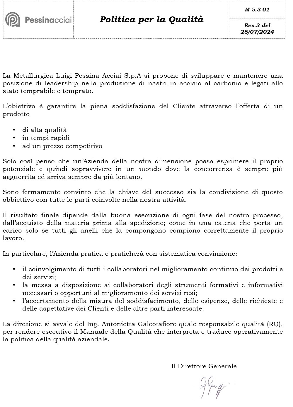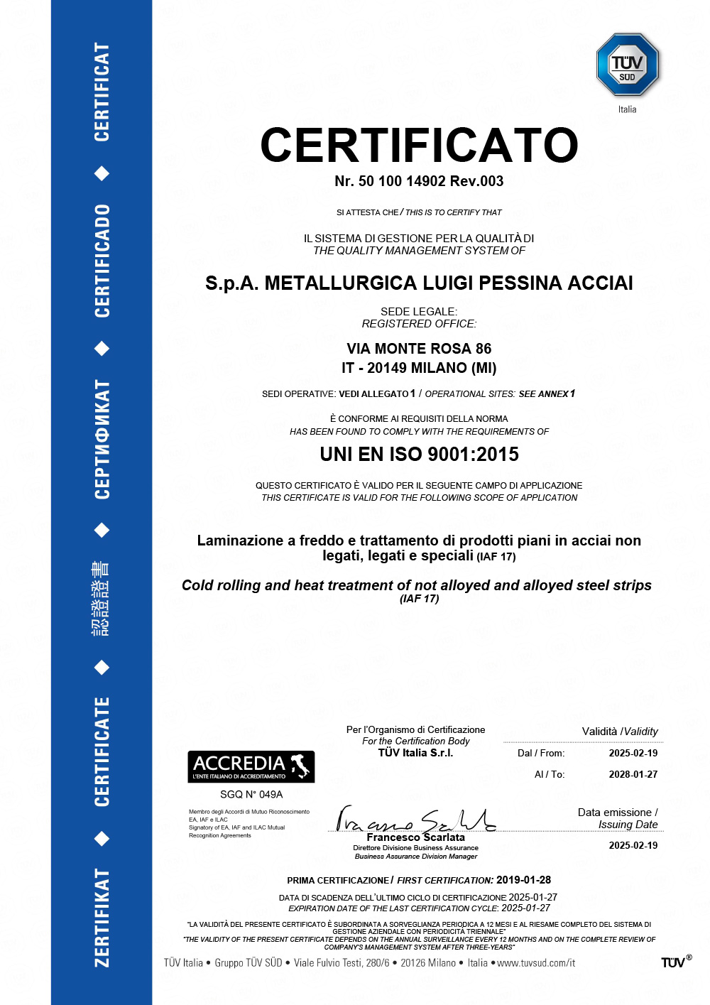 Dal 1997 la Metallurgica Pessina ha un sistema di qualità certificato e dal 2006 è una Azienda certificata TUV.